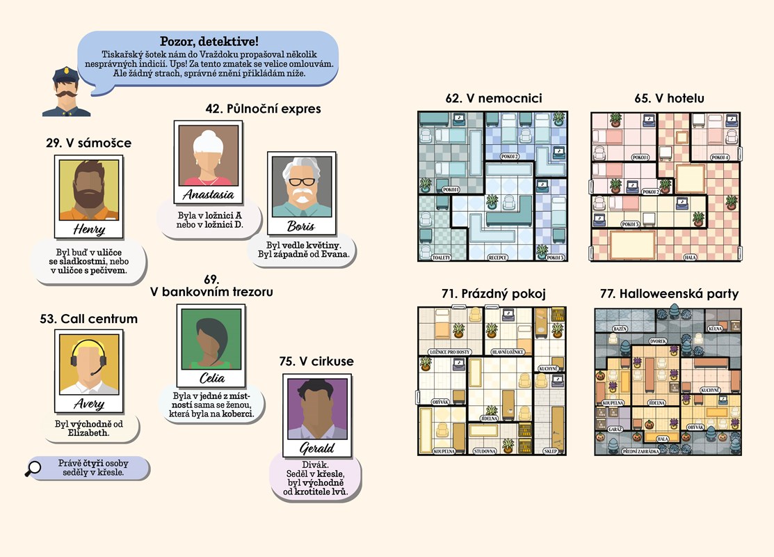 Pozor, detektivové! Tiskařský šotek nám do Vraždoku propašoval několik nesprávných indicií. Za způsobený zmatek se omlouváme, tady najdete opravy!