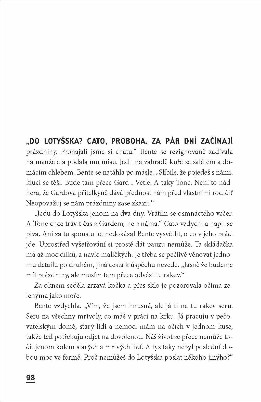 Jednoho letního podvečera záhadným způsobem zmizí sedmiletý chlapec. Několik dní poté zahyne pod koly neznámého vozu lotyšská dělnice. Jakkoli je to nepravděpodobné, postupem času se ukáže, že obě tragédie spolu těsně souvisí. Policejní vyšetřovatel Cato Isaksen má z tohoto dvojitého případu noční můry v neposlední řadě i proto, že mu do týmu nasadili novou a nesnesitelnou kolegyni, která se ani na krok nehne bez svého otravného psa. Čtenáři si v kriminálním románu Unni Lindellové užijí napínavou a rafinovanou zápletku a navíc se dozvědí mnoho zajímavého o současném Norsku.