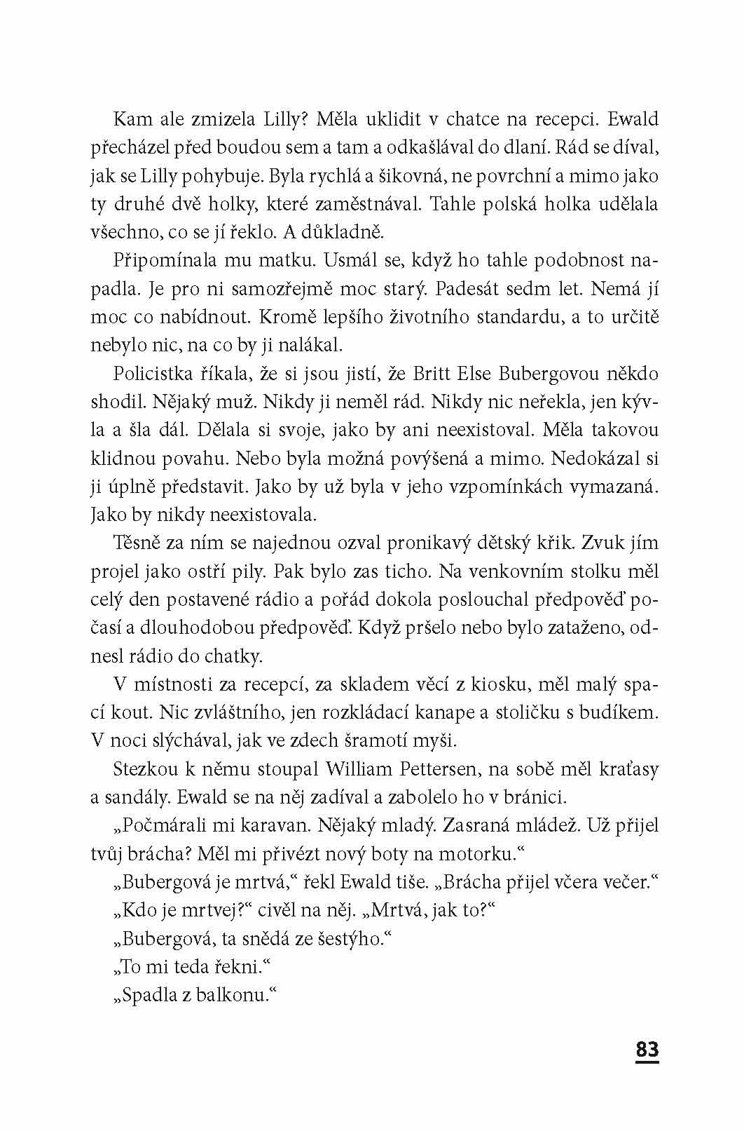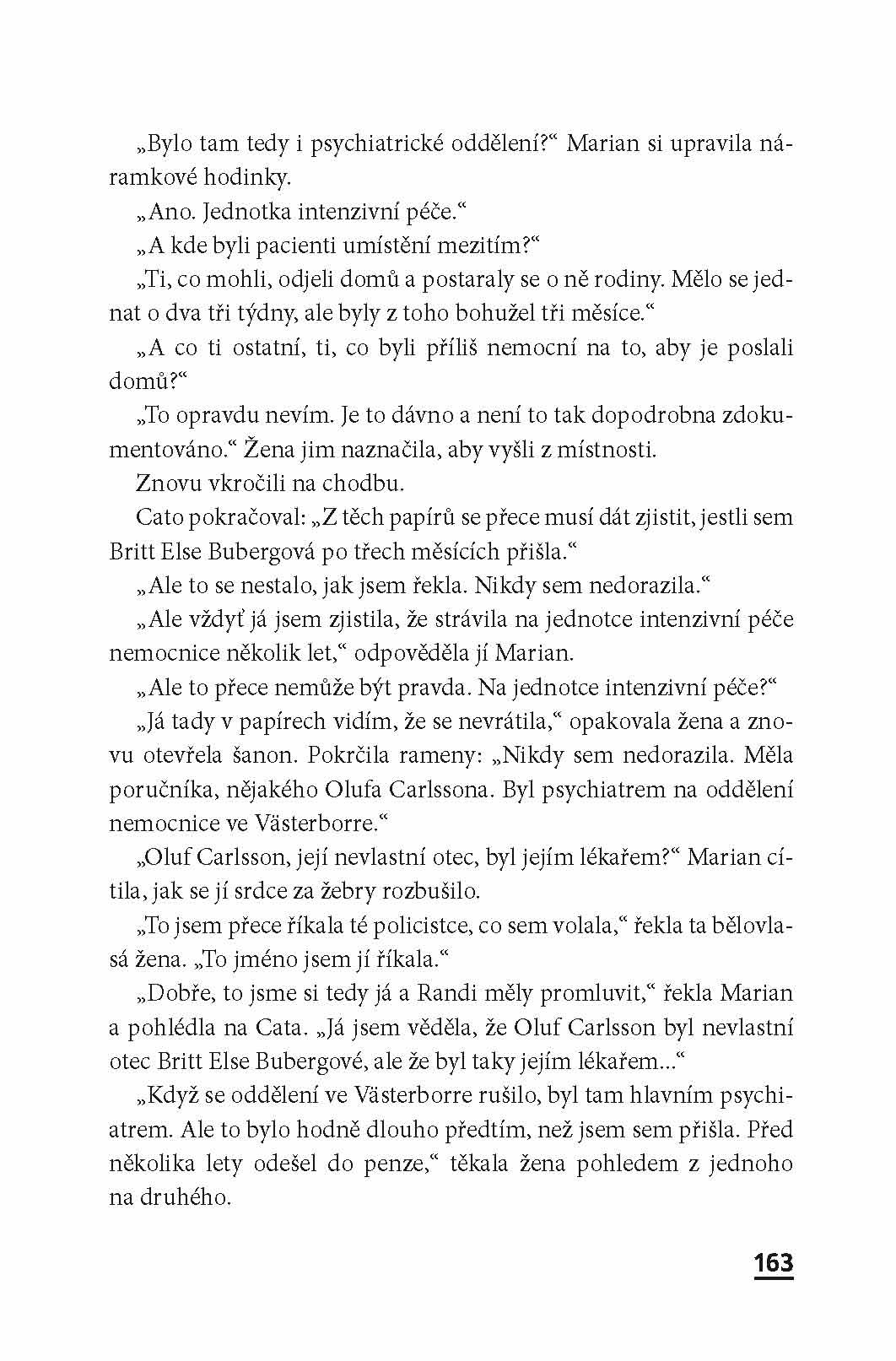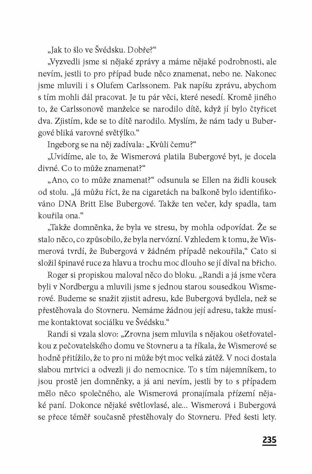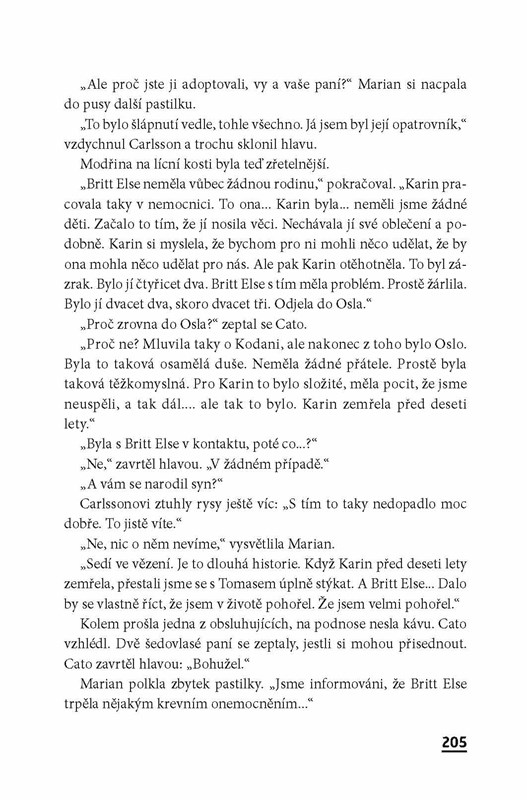 Sedmapadesátiletá Britt Bubergová přijde o život ve výškovém obytném domě na předměstí Osla. Žila velice osaměle a stýkala se pouze se starou ženou z domova důchodců, který leží v sousedství. Ve stejnou dobu z kempinku nedaleko od Osla beze stopy zmizí devatenáctiletá Lilly Rudecková. Vyšetřovatel Cato Isaksen musí řešit těžký případ. A po svém boku znovu má zarputilou a otravnou kolegyni Marian Dahleovou a její fenu. Když se ukáže, že majitel kempinku bydlí ve stejném bloku jako zabitá žena, začnou Cato a Marian tušit, že oba případy spolu souvisí. V tomto příběhu, který připomíná posedlost, oba dva dožene jejich vlastní minulost. Všechny události se dají do pohybu vinou jedné jediné strašlivé lži a v jejich víru se děsivým způsobem proplétají osudy několika lidí.