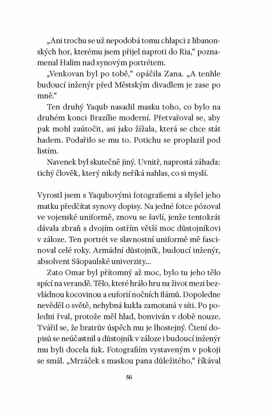Brazilský Manaus na březích Rio Negra uprostřed Amazonie, s příchutí Orientu. To je dějiště románového příběhu Miltona Hatouma, Brazilce s libanonskými kořeny. Půl století v životě města, procházejícího dramatickou metamorfózou, se prolíná s osudy rodiny, které rozhodujícím způsobem ovlivní rivalita dvou bratrů-dvojčat. Jejich příběh, ale i příběh o mateřské i manželské lásce, o spalující ctižádosti i o moudré pokoře, vypráví syn indiánské služky. Skládá jej z útržků vzpomínek, jimž se snaží dát nějaký řád i z velmi osobního důvodu. Pátrá totiž po svém otci. Román přeložený do dvanácti jazyků patří k nejlepším dílům současné brazilské literatury.