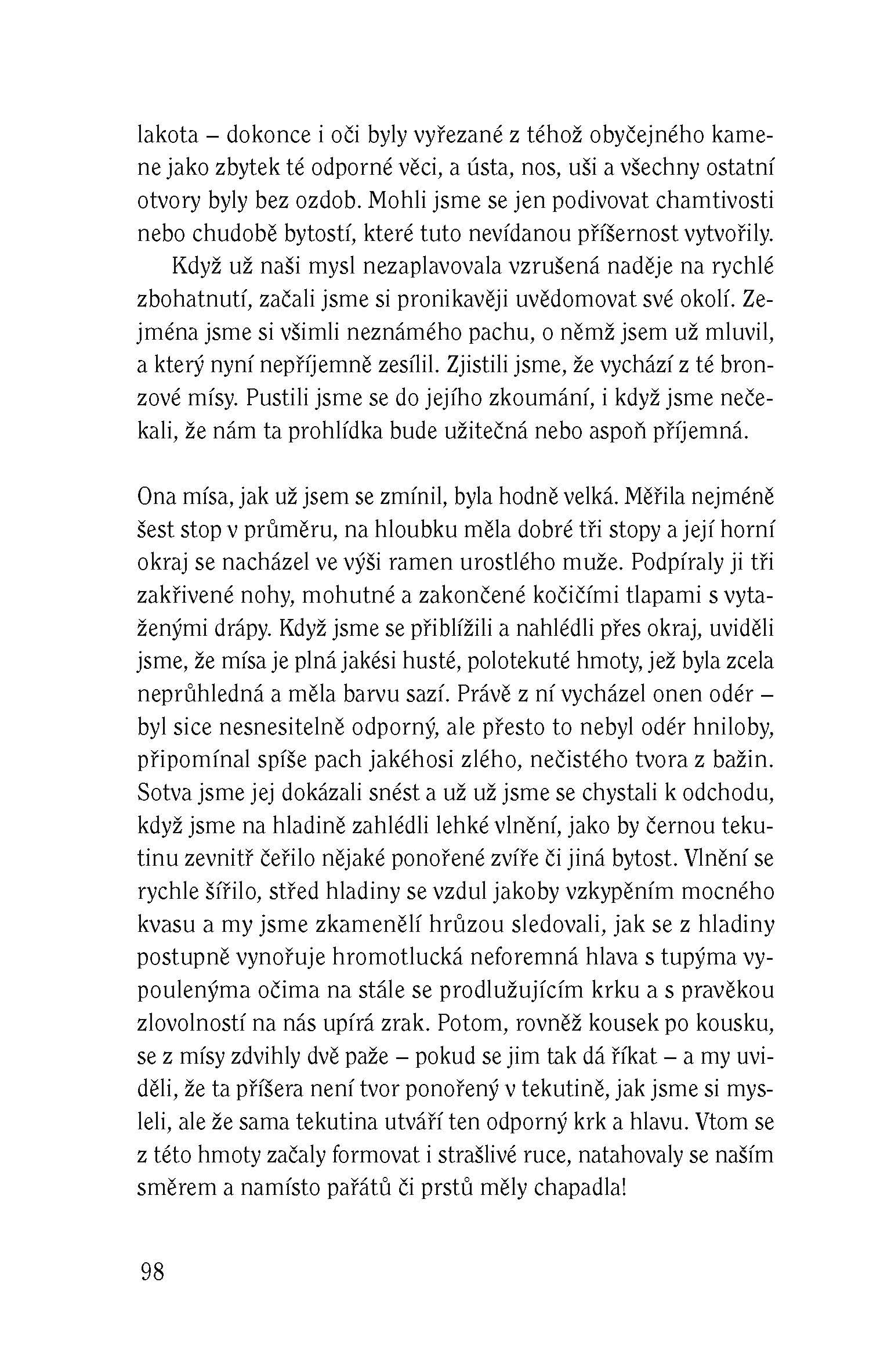 Clark Ashton Smith má mezi autory fantastické a strašidelné literatury zvláštní postavení. Některými je opomíjen, jinými je nekriticky zbožňován. Tyto vybrané spisy dokazují, že ve svých nejlepších textech se rovnal skutečným velikánům. Povídky jako „Gorgona“ nebo „Bezejmenný potomek“ patří ke skutečným, jakkoli poněkud ukrytým perlám světové prózy.