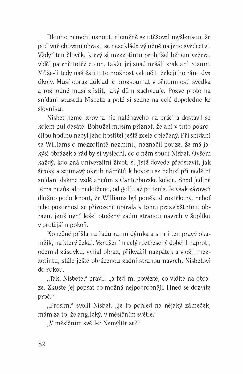 Na samém konci 19. století, v době, kdy vrcholila éra anglických duchařských příběhů, přichází nenápadný gentleman Montague R. James – uznávaný odborník na staré rukopisy a vysoce postavený učenec, který po večerech toliko pro své potěšení píše strašidelné příběhy. Z pouhé zábavy se však stal literární skvost – James totiž nově definoval klasický duchařský příběh tím, že do něj věrohodné reálie, opravdové násilí, bezmála hmatatelnou zlovolnou hrozbu a krutá, nic nepromíjející strašidla. Tím založil tradici nových duchařských příběhů 20. století a jeho dílem se dodnes inspirují spisovatelé i filmoví tvůrci. První mu vzdal hold sám H. P. Lovecraft, když jej nazval „jedním z mála opravdových mistrů“.