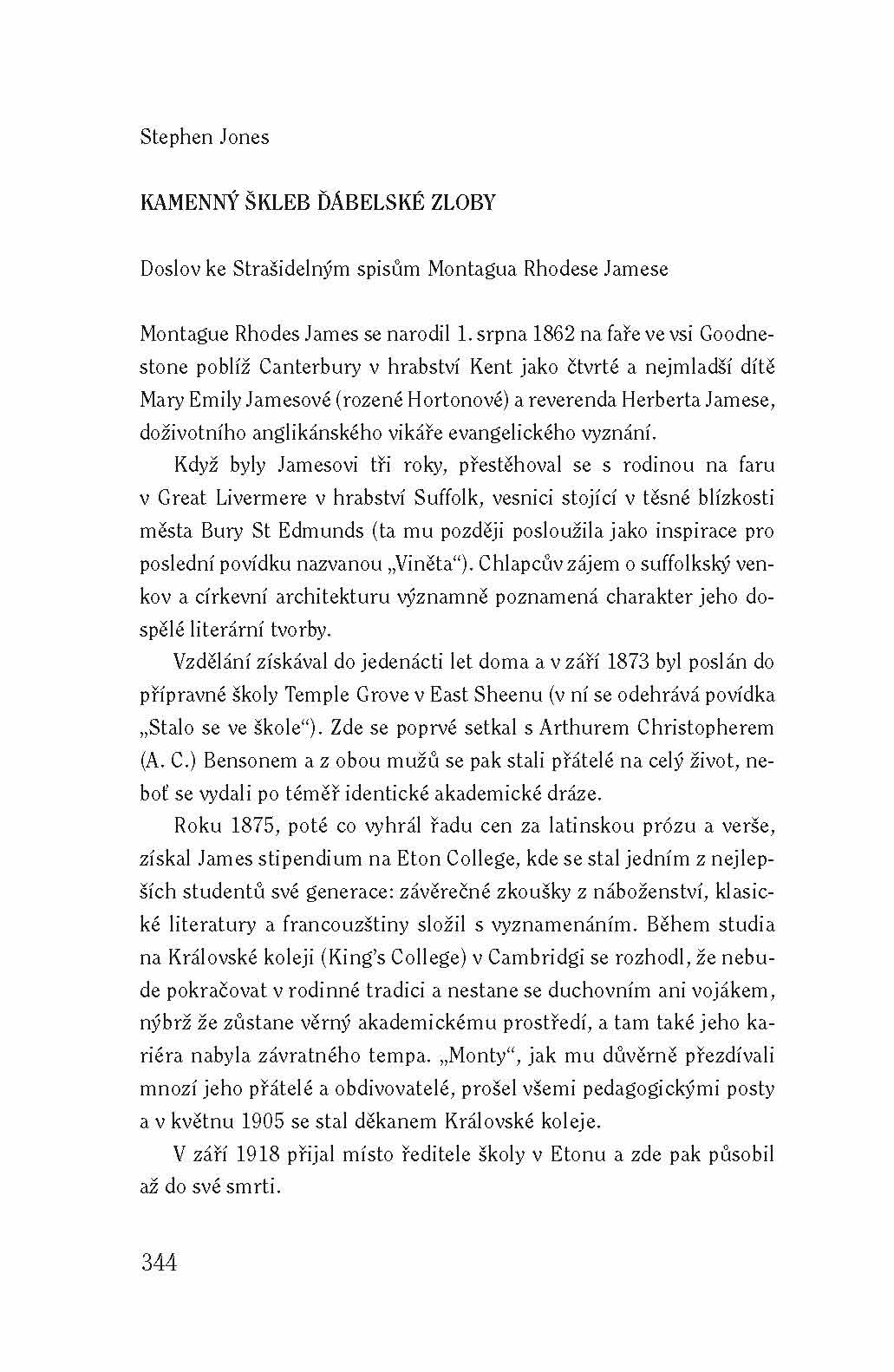 Druhým svazkem Strašidelných spisů se završuje první úplné české vydání beletristického díla Montague R. Jamese, klíčové osobnosti moderní anglické strašidelné povídky. Český čtenář tak má možnost poznat v souvislostech rozsahem nevelké, a přesto impozantní dílo, které dodnes překvapuje svou originalitou.
