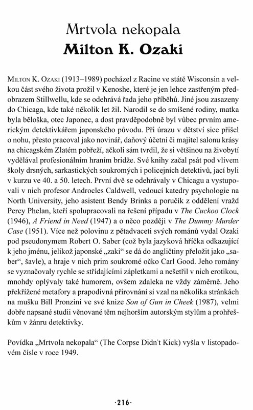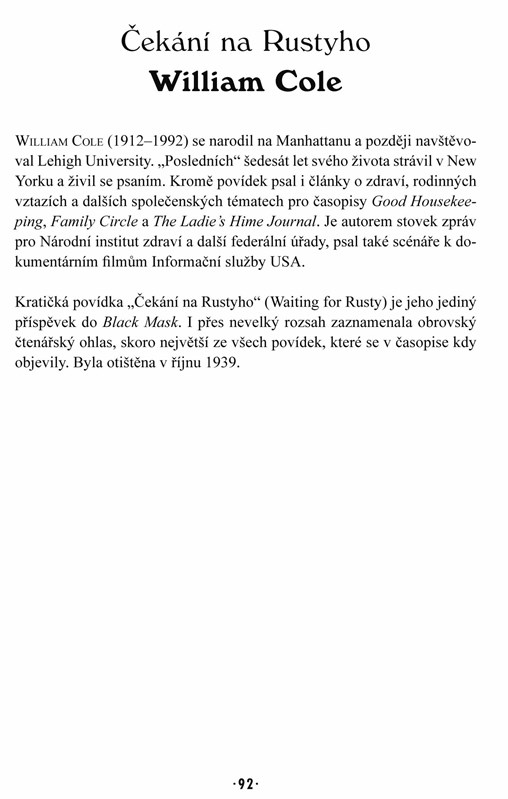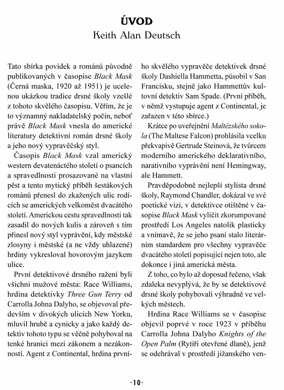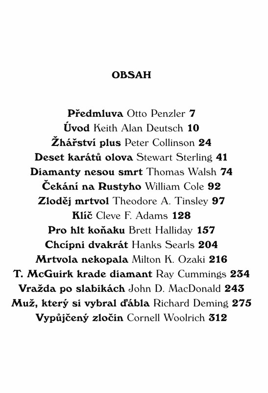 Český výbor na jejich základě pořídil Pavel Medek, sám na slovo vzatý znalec a sběratel americké drsné školy. Záměrně do něj zařadil výhradně povídky, jež česky zatím nikdy nevyšly. Vedle známých jmen – např. Peter Collinson, což byl toliko pseudonym Dashiella Hammetta, či John D. MacDonald – se v něm tak představuje řada autorů v češtině vůbec poprvé: Theodore A. Tinsley, William Cole, Thomas Walsh a další. Práce na této knize byla pro překladatele Pavla Medka bohužel tou poslední, ale možná je o to cennější.