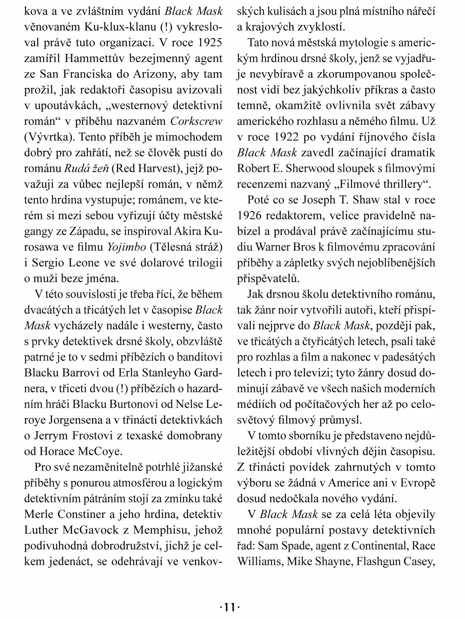 Black Mask je legendární americký magazín, který v době své největší slávy ve dvacátých a třicátých letech 20. století vydával první práce Dashiella Hammetta, Raymonda Chandlera, Erlea Stanley Gardnera a dalších skvělých autorů detektivek.