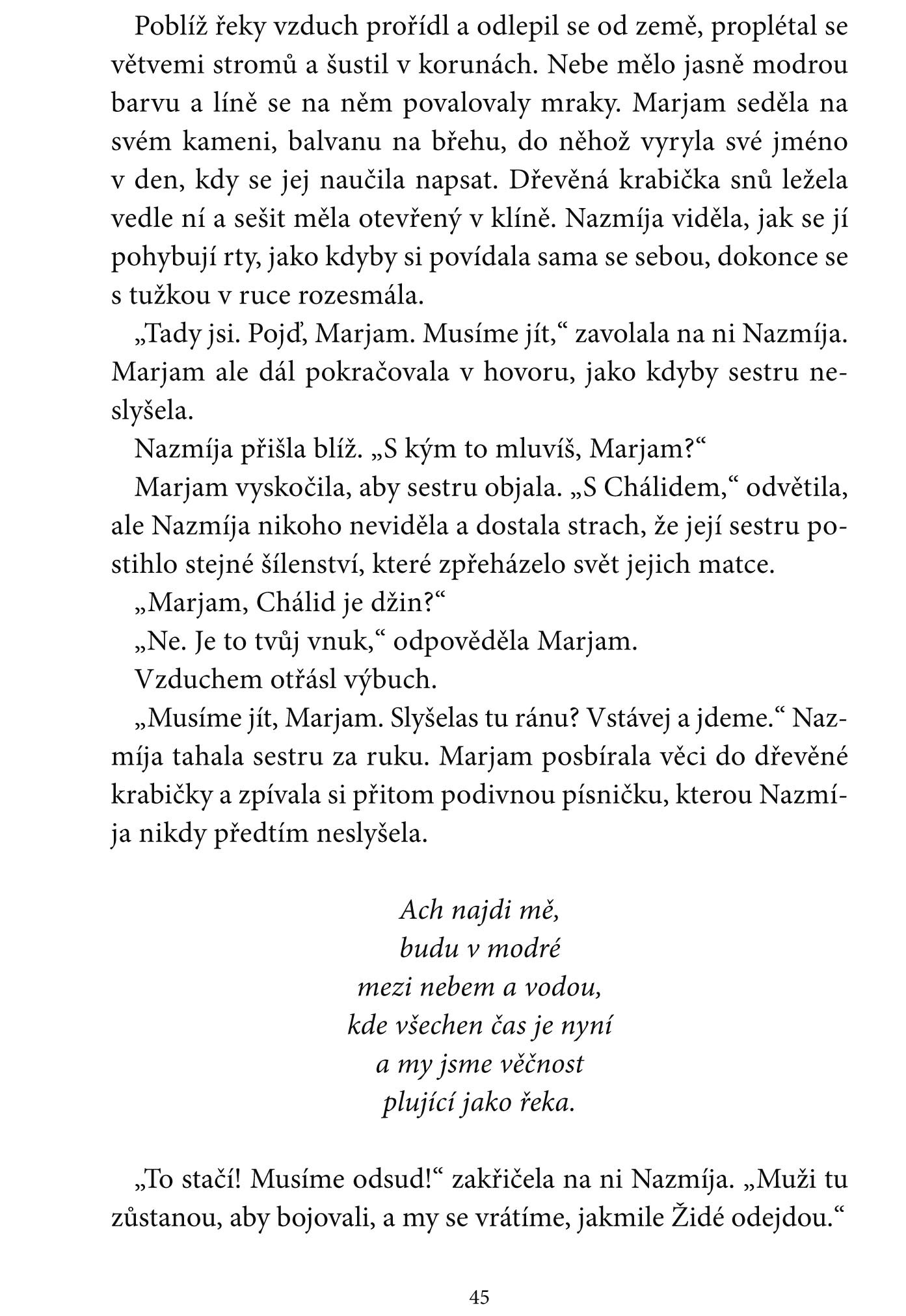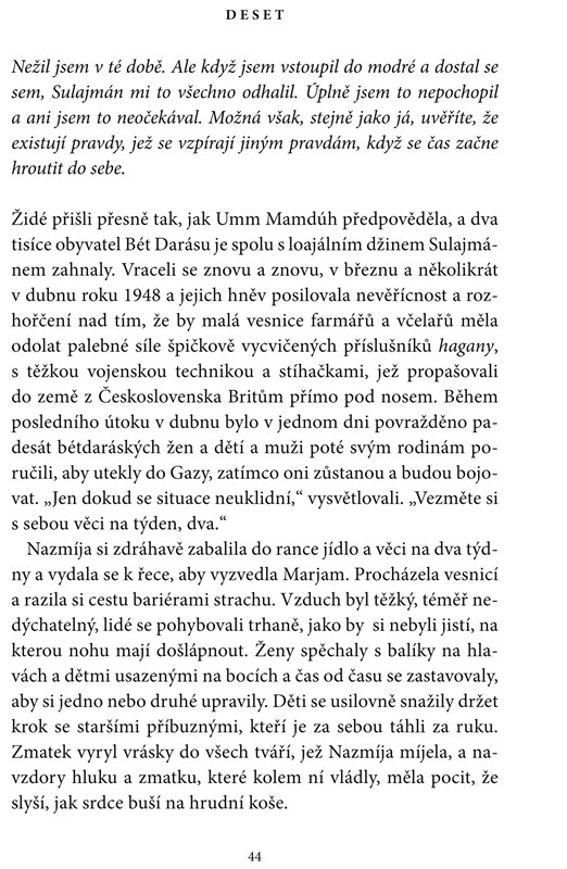 Píše se rok 1947 a v Beit Daras, palestinské vesnici obklopené olivovými háji, žije rodina Barakových. Nejstarší dcera Nazmíja pečuje o svou ovdovělou matku, která často trpí halucinacemi. Nazmíjin mladší bratr Mamdúh se stará o místní včelstvo a nejmladší Marjam, jež má každé oko jinak barevné, tráví dny povídáním s imaginárním kamarádem a psaním. Když se u hranic městečka shromáždí izraelské vojenské jednotky, nikdo nemá ponětí, jaké násilí vypukne. Brzy je vesnice zničena a rodina se musí vydat na strastiplnou cestu do Gazy.