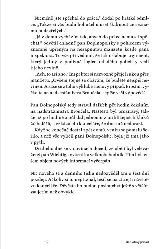 Jednoho rána kráčí finanční rada Dolnopolský do svého úřadu a najde botu. Na tom by nebylo nic podivného, pokud by v té botě nebyla i noha...
