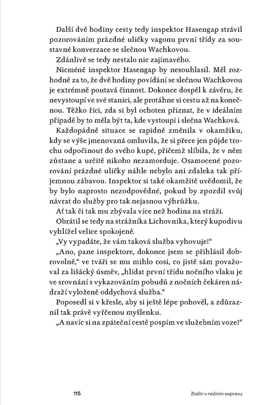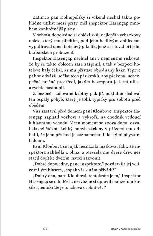 Nález obuté končetiny a potažmo celého lidského těla naprosto změní panu Dolnopolskému život. Setkává se s mladým inspektorem Hasengapem, který kromě bystrého myšlení a kreativity vládne i neortodoxními vyšetřovacími metodami. Nesourodá dvojice má před sebou dobrodružné vyšetřování netuctového případu a zločinu v nočním expresu.