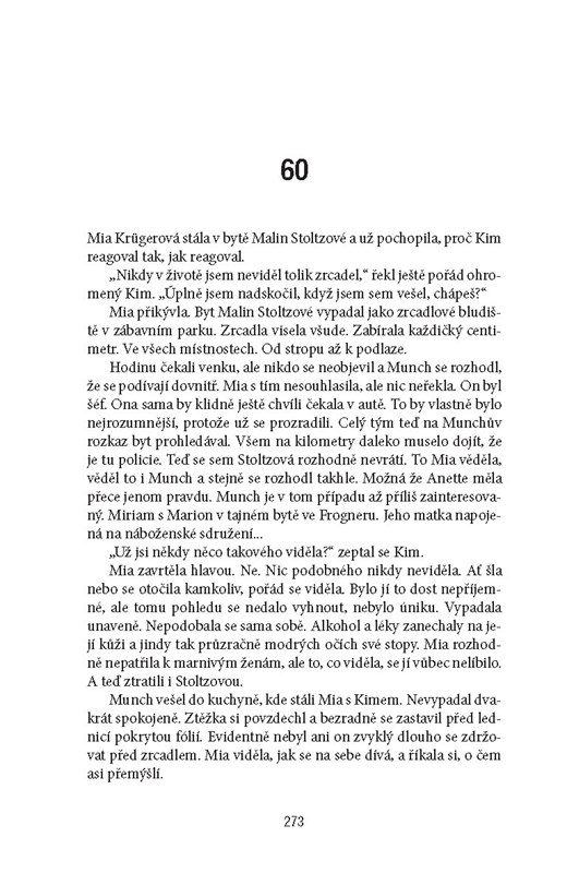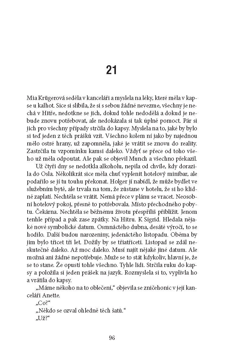 „Zcela brilantní norská detektivka, která má všechno, co si jen lze od dobrého příběhu přát. Uvěřitelné a poutavé postavy. Nesmírně napínavou zápletku, jež v sobě skrývá hrůzné tajemství. A nečekaně působivé vystižení různých míst, kde se děj odehrává, jež vytváří velmi příjemný kontrast mezi městskými scénami a těmi zasazenými do venkovské krajiny.“