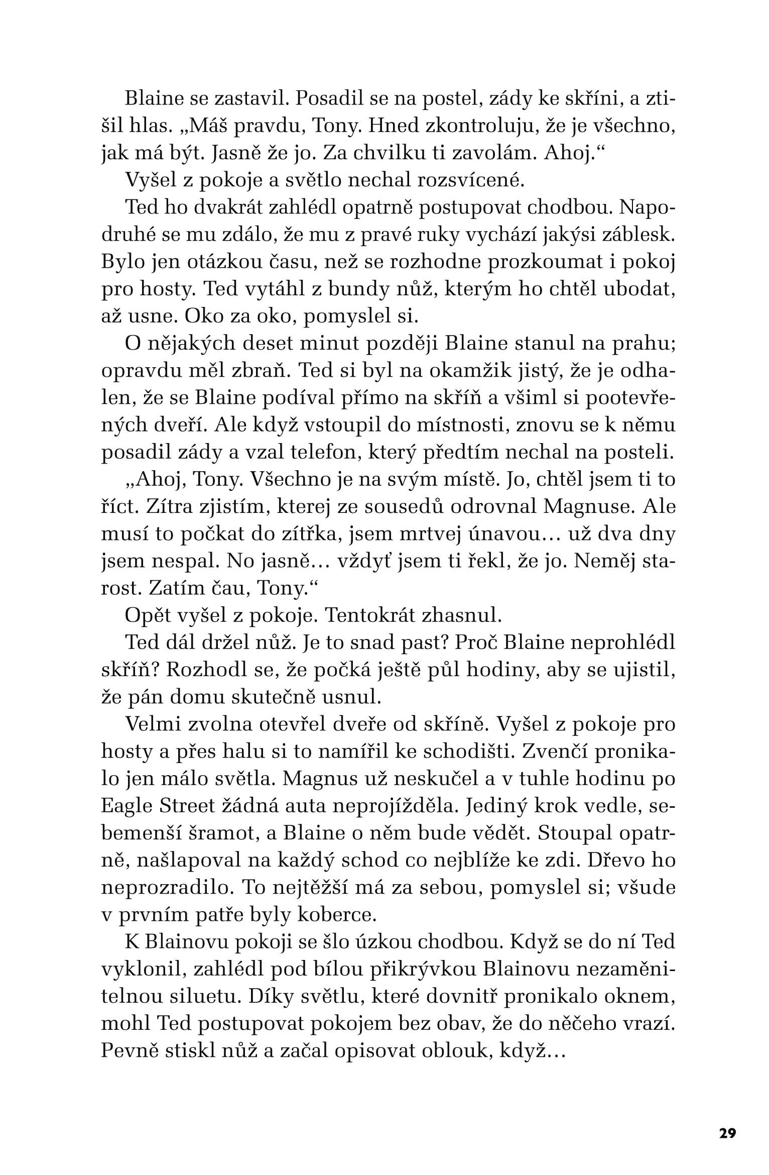 Na prahu stojí cizí muž jménem Lynch, který kupodivu přesně ví, k čemu se Ted chystá, a předloží mu podivný návrh. Pokud na něj Ted přistoupí, nevystaví svou rodinu utrpení, které by jí přinesla jeho sebevražda. Ted se nechá přesvědčit, jenže lístek na stole i nečekaná nabídka jsou jen první tahy v rafinované hře plné manipulace a smrti. Kdosi jej vylákal, aby se vypravil po cestičce z drobečků, které musí sesbírat, než si dá všechno dohromady. Někdo, kdo ho zná až do morku kostí; někdo, kdo ho donutí pochybovat o sobě samém i lidech kolem sebe. Kdo tahá za nitky v pozadí?