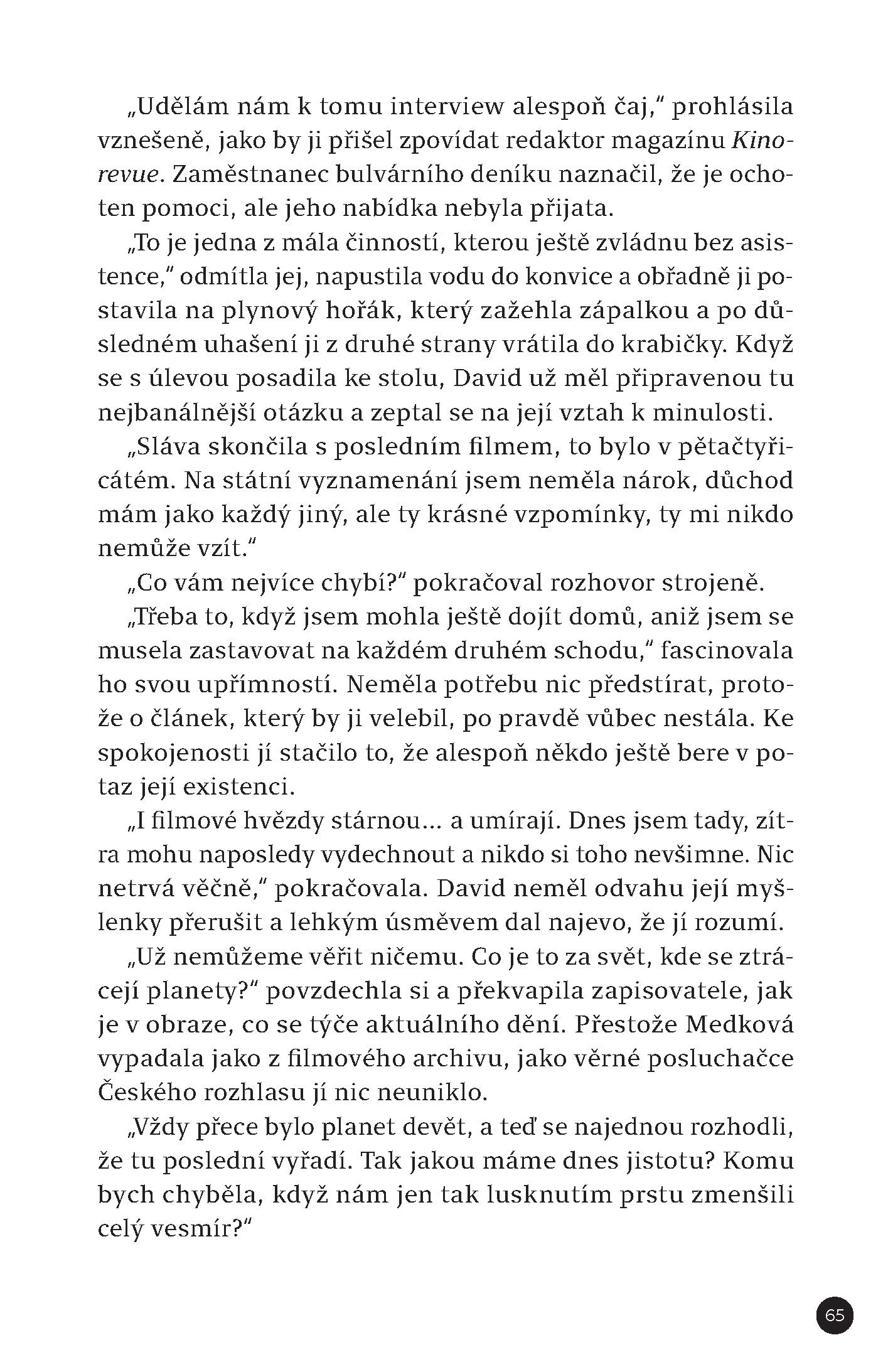V srpnu roku 2006 se astronomové na kongresu v Praze rozhodli vyřadit ze sluneční soustavy planetu Pluto, a tím změnit učební osnovy i budoucí encyklopedie. Největší událost ve vesmíru od dob Velkého třesku zůstala téměř bez povšimnutí. Informace meziplanetárního významu se netýkala ani Davida s Alicí, jejichž svět se smrsknul na pár společně sdílených metrů čtverečních, kde se jeden druhému marně snažili vyhnout. Zatímco se Pluto proměnilo v bezvýznamnou trpasličí planetu, jejich vztah dospěl do mrtvého bodu.