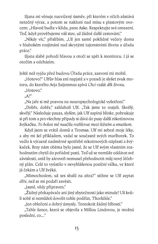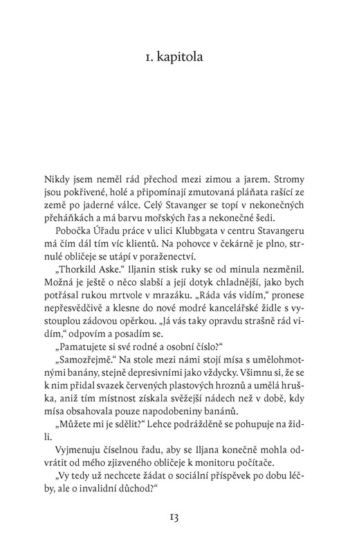Druhý díl norské detektivní série s charismatickým vyšetřovatelem Thorkildem Askem. Kdysi elitnímu policejnímu důstojníkovi Thorkildu Askemu osud servíroval jednu pohromu za druhou. Prošel si vězením, ztratil práci, dobrou pověst i milovanou ženu. Další nebezpečná situace na sebe nenechá dlouho čekat. Autorka kriminálních románů jej přesvědčí, aby jí pomohl s přípravou nové knihy. Předešlý poradce byl ale v této roli zavražděn. Aske brzy pochopí, že nic není tak, jak se zpočátku domníval...