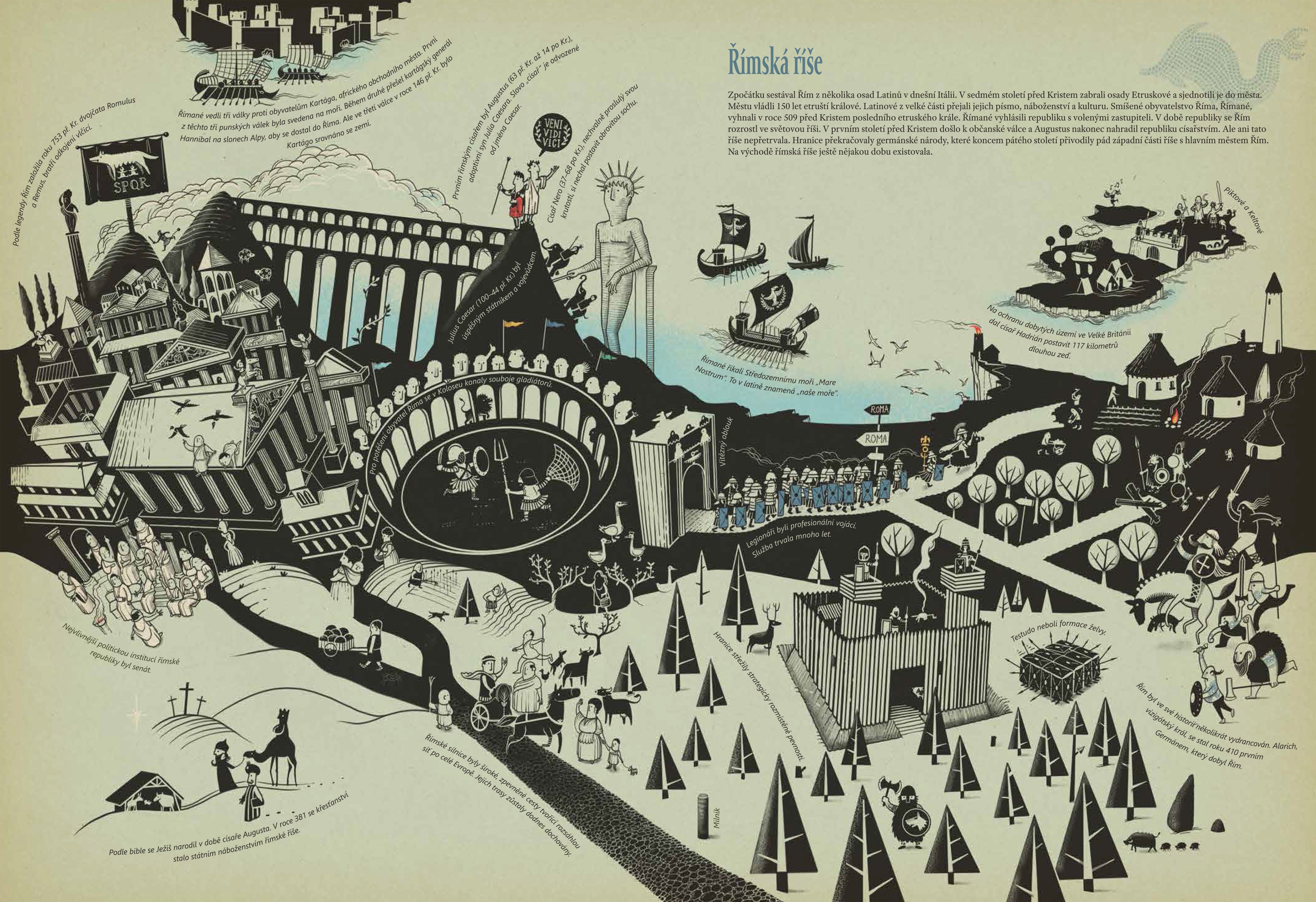 Příběh světových dějin pro malé i velké čtenáře, který vás vezme na cestu časem od okamžiku velkého třesku přes období dinosaurů, prvních velkých civilizací, středověku až k turbulentnímu dvacátému století, vesmírným objevům a současnosti. Na osmdesáti stranách zachycuje nejen stěžejní historické okamžiky, války a katastrofy, ale představuje také umělce, důležité myslitele i vládce.