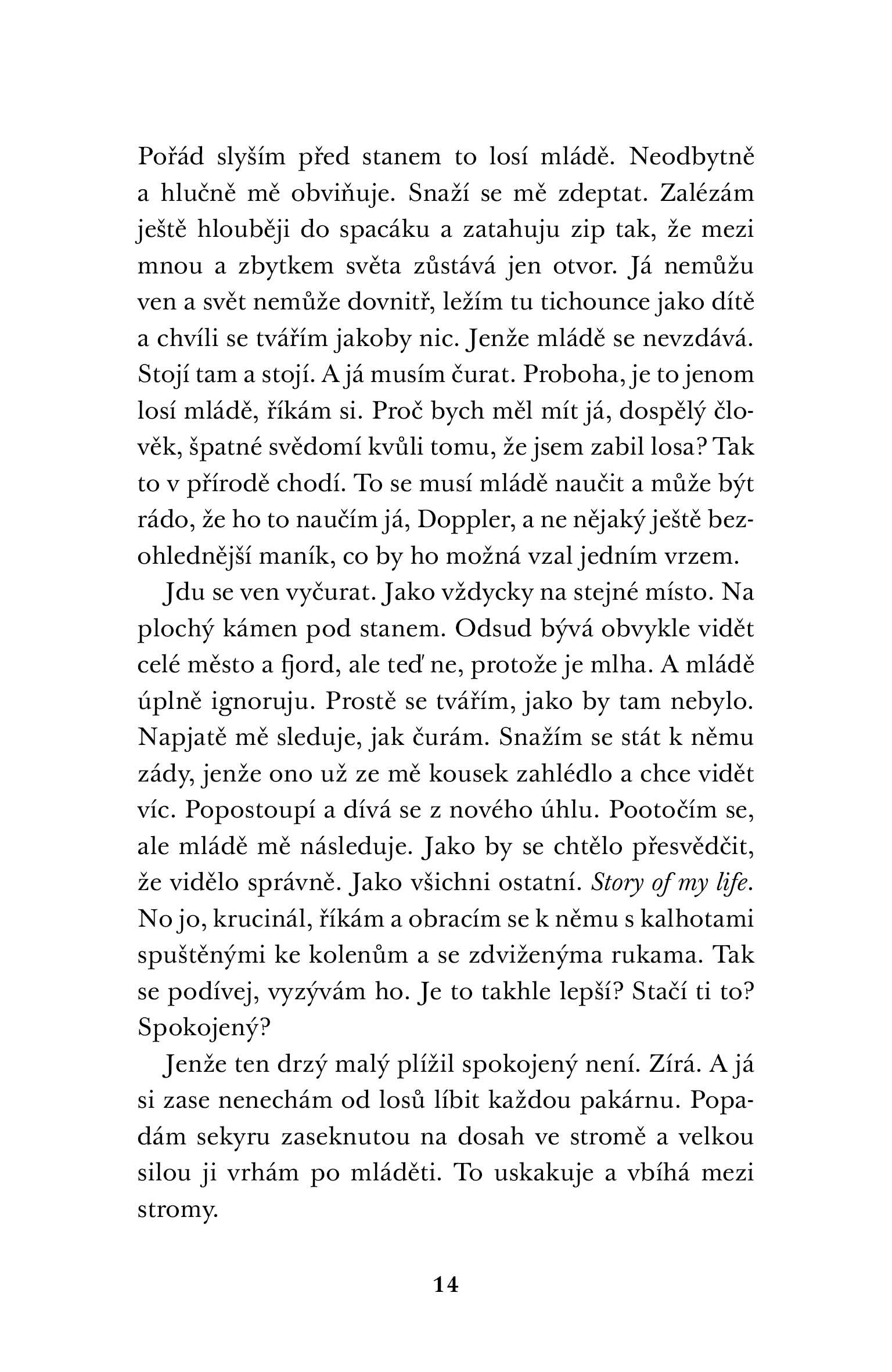Doppler v důsledku tohoto zážitku usoudí, že svůj život musí radikálně změnit. Opustí proto dosavadní pohodlnou existenci i rodinu a rozhodne se odejít z města do lesů v okolí Osla. Společnost mu zde dělá losí mládě Bongo, jehož matku zabil, aby ve svém novém domově nezemřel hladem. Ke spokojenosti mu chybí už jen nízkotučné mléko...