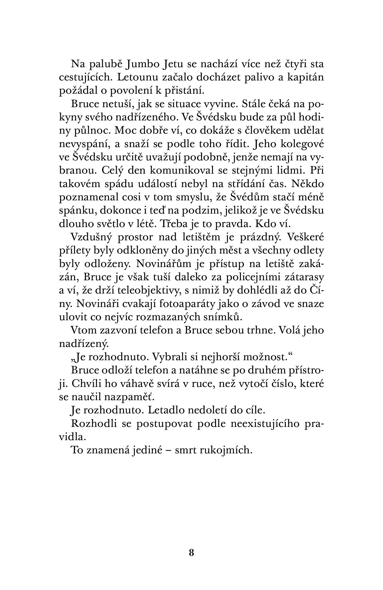 Únos dostane na starost kriminální inspektor Alex Recht spolu s energickou Eden Lundellovou z protiteroristické jednotky tajné policie. Prostředníkem mezi vládou a policií se stane Fredrika Bergmanová, která toho času působí na Ministerstvu spravedlnosti a která je do vyhoštění také zapletená Brzy však všichni zúčastnění pochopí, že plán únosců je mnohem krutější, než si dokázali představit. Čas letí a Fredrika s Alexem si s rostoucím úděsem uvědomují, že brzy propásnou poslední možnost, jak cestující zachránit. Boj proti času se současně stává i bojem proti strachu amerických úřadů z teroristického útoku. A letadlu zatím začíná docházet palivo…