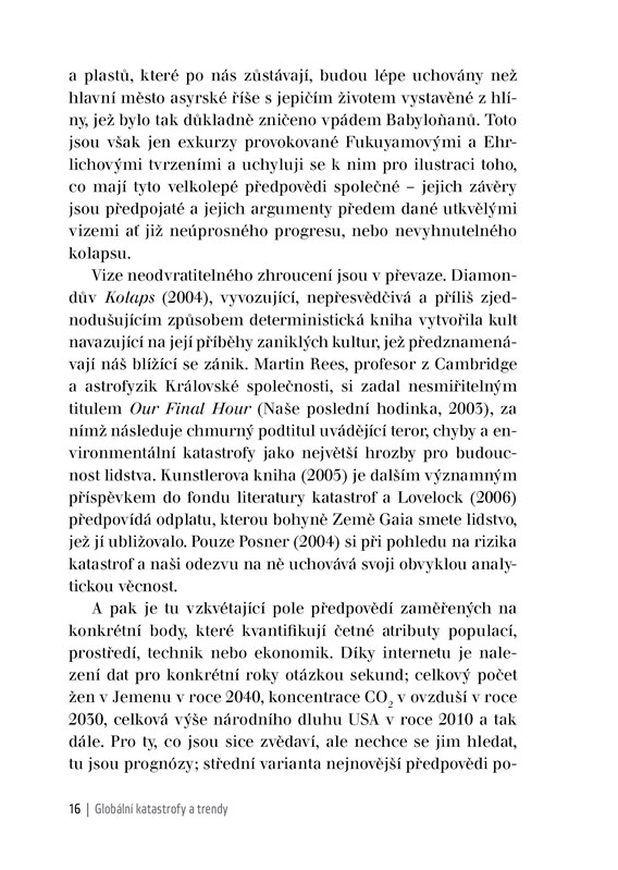 Globální katastrofy a trendy se nestaví na stranu scénářů záhuby a zmaru ani na stranu technoeuforie. Smil namísto toho argumentuje, že pochopení změn nám pomůže zvrátit negativní trendy a minimalizovat riziko katastrofy.