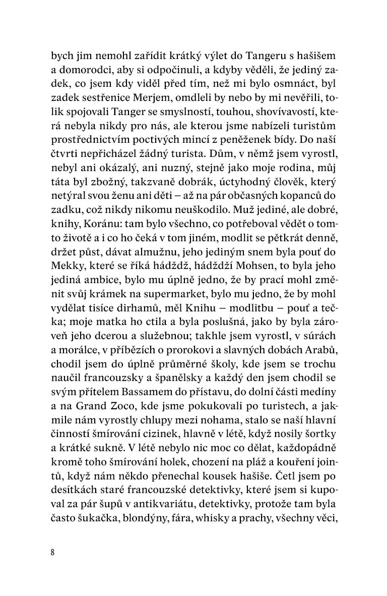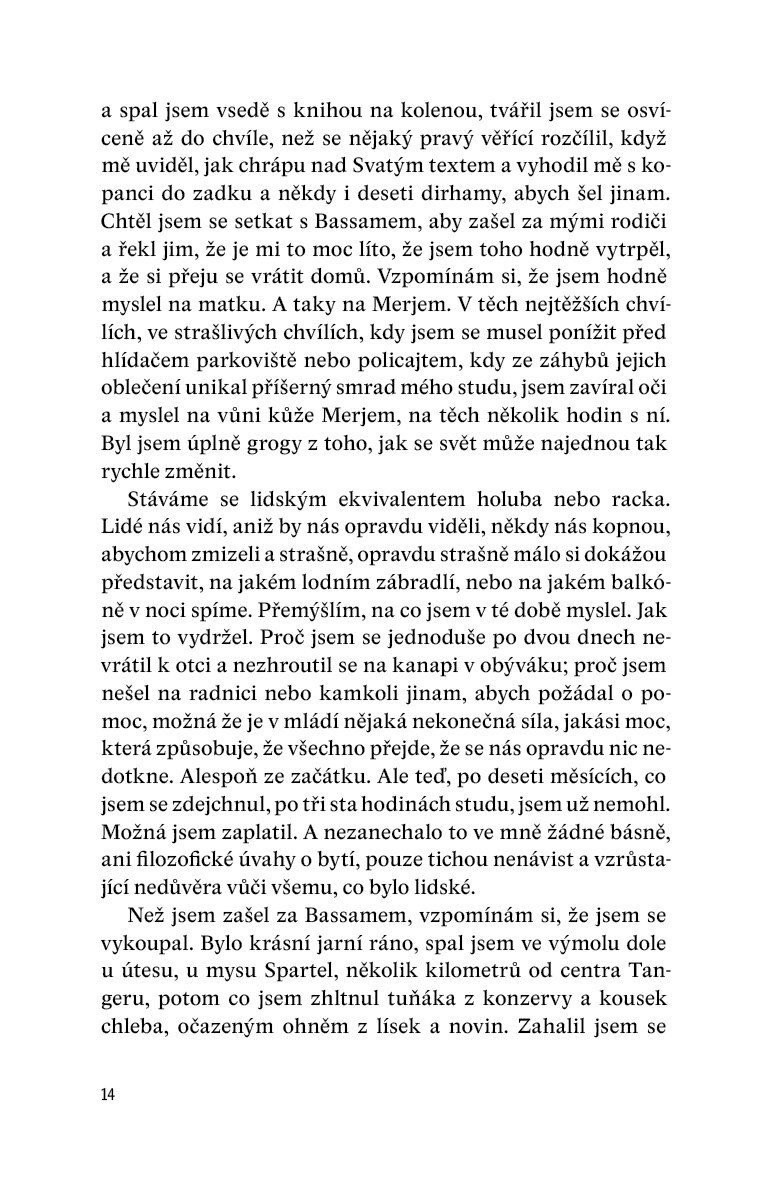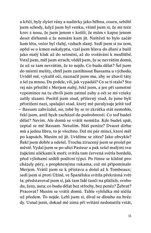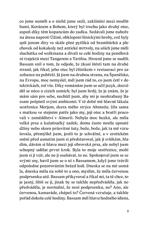 Na pozadí všeho probíhají demonstrace v Egyptě, Arabské jaro je v plném proudu. Jednoho dne se Lachdar s Básamem seznámí v Tangeru se dvěma španělskými studentkami. Do jedné z nich se Lachdar zamiluje a ještě víc než předtím se chce dostat do Španělska, do Barcelony, aby mohl být své lásce nablízku. Tím začíná jeho iniciační cesta. Nakonec se mu horko těžko povede (pracuje jako námořník na trajektu do Evropy, potom pomáhá v pohřební službě v Algeciras) dostat do Španělska.
