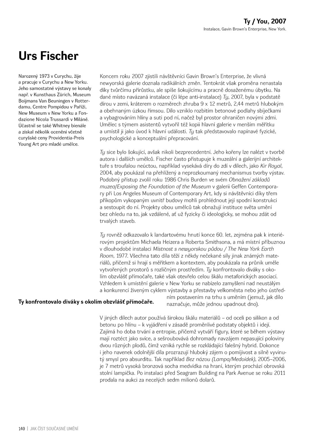 Působivý a nově pojatý pohled na tvorbu současných umělců, jehož prostřednictvím autor zkoumá proměnlivý a často zarážející svět umění jednadvacátého století.