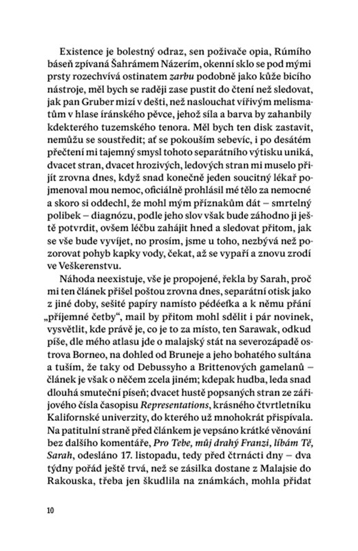 Franz Ritter není ve své kůži. Muzikolog specializující se na středněvýchodní vlivy v hudbě trpí ve svém vídeňském bytě nespavostí. Celou noc vzpomíná na svou lásku k Sarah, francouzské orientalistce, s níž se seznámil, když kdysi přijela do Rakouska na konferenci. Příběh jejich vztahu se odvíjí na pozadí dějin orientalistiky i událostí v moderním arabském světě (arabské jaro, islámský chalífát, íránská revoluce a další) i Franzových vlastních cest do Istanbulu, Damašku, Teheránu a dalších míst, kde Sarah opakovaně potkává.
