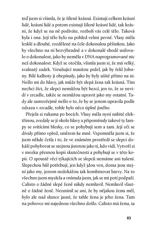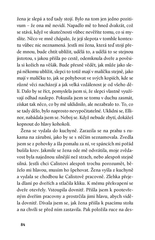 Je mi třicet šest let a hledám muže. Něžného, ale zase ne moc. Tak zní inzerát Ellinor, která se rozhodne učinit přítrž svým neúspěšným pokusům o vztah. Seznámí se s literárním kritikem Calistem, s nímž neváhá jít hned do postele. Za to, co jí vzápětí provede, se mu pomstí spálením jediného exempláře rukopisu „Na ostří jazyka“. Jeho autorem je Max Lamas, kontroverzní stárnoucí spisovatel, který hledá ženu schopnou mluvit jedenácti jazyky stejně jako on. Když na scénu vstoupí třetí hlas patřící zkrachovalé italské šlechtičně Lucrezii, vrhne to na ostatní úplně nové světlo. Román o psaní románu je břitkou, svěžím stylem podanou satirou mezilidských vztahů, vzájemné komunikace a rovnoprávnosti pohlaví. Čtenář přitom neustále balancuje na hraně, kde každé slovo může být fatální. Díky nesmlouvavé přímočarosti podání, podmanivému stylu a karikovaným postavám se román řadí k nejpozoruhodnějším dílům současné světové feministické literatury.