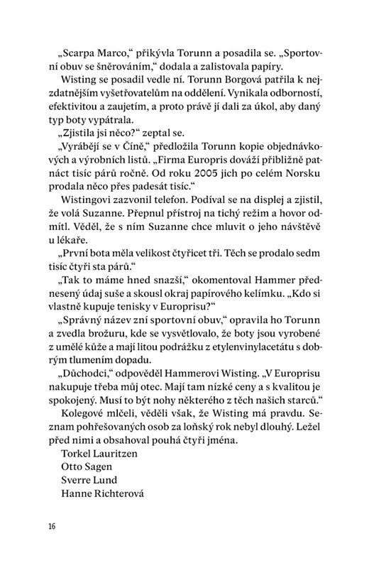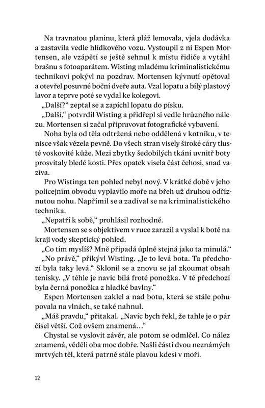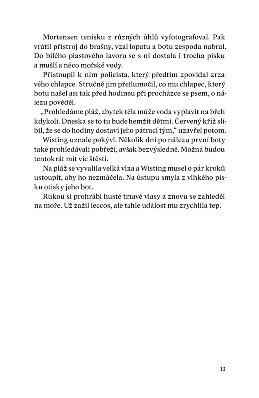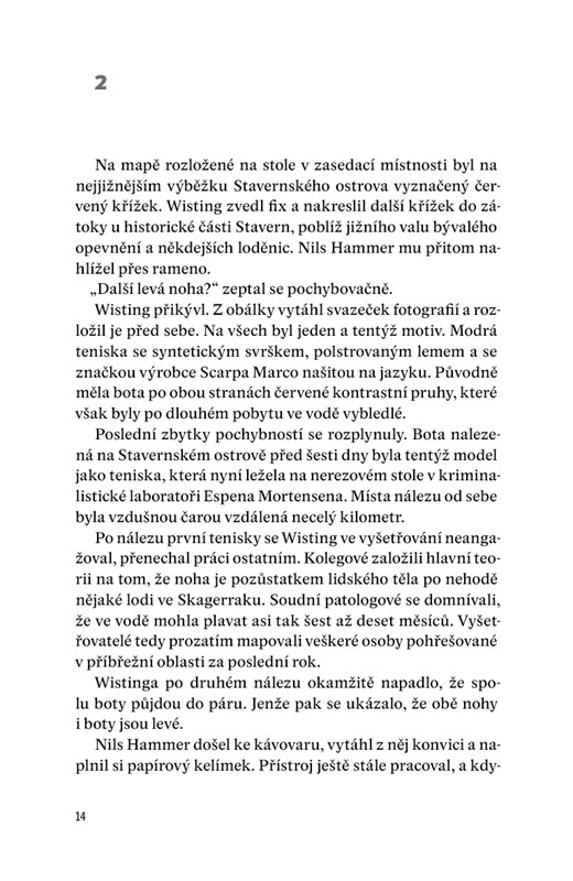 Během jediného letního týdne vyplaví moře na pláž poblíž Stavern postupně čtyři levá chodidla obutá v teniskách. Místní policie čelí záhadě: Kde jsou těla, k nimž nohy původně patřily? Kdo je takto znetvořil a proč? A je možné, že jde o tři důchodce a psychicky nemocnou ženu, kteří jsou od podzimu pohřešováni? Wisting si neví rady a situaci mu nijak neulehčí ani příjezd jeho dcery, která se rozhodla napsat reportáž o tom, jak lidem odsouzeným k dlouholetému vězení za těžké zločiny změnil pobyt za mřížemi život. Policejní i novinářská práce se opět nečekaně protnou ve chvíli, kdy vyjdou najevo dlouho utajované skutečnosti, které ze dna na povrch vůbec vyplout neměly.
