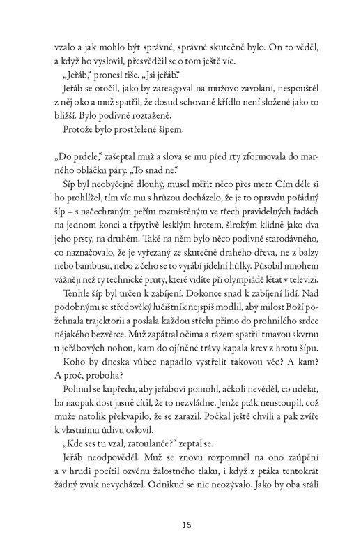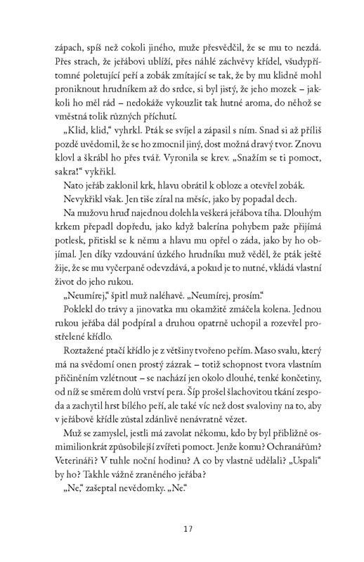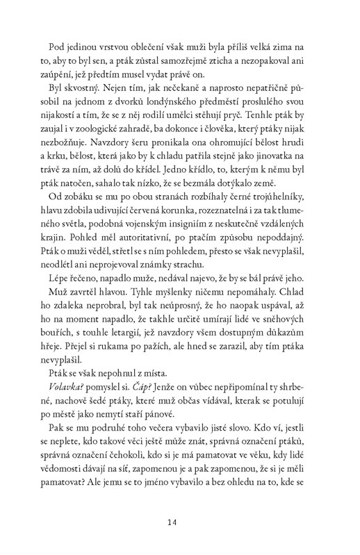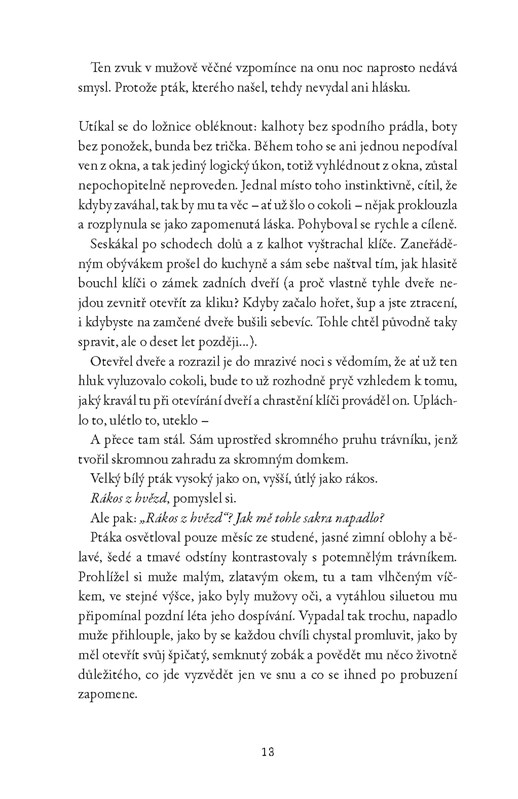 Čtyřicetiosmiletý Američan George Duncan provozuje tiskařský krámek v Londýně, je rozvedený a osamělý víc, než si chce přiznat. Jedné noci ho vzbudí zvláštní zvuk nesoucí se ze zahrady. Ke svému překvapení tam najde bílého jeřába, vyššího než on sám. Pták má poraněné křídlo, ale když mu George vytáhne šíp z rány, opět odletí k nebi.