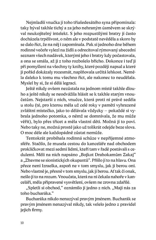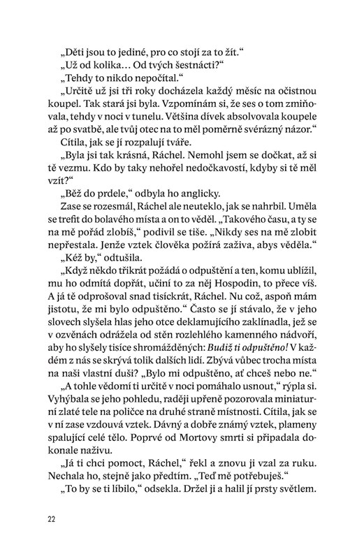 Ráchel má problém: nemůže zemřít. Její současné potíže – skomírající podnik, dospělý nezaměstnaný syn a mrtvý manžel – jsou ničím oproti tomu, co zažila za posledních dva tisíce let, kdy přežila desítky svých partnerů a viděla rodit se a umírat stovky svých dětí. Každou rodinu musí jednoho dne opustit, aby sama neupadla v podezření, přičemž jejímu znovuzrození vždy musí předcházet upálení se v očistném ohni... Od chvíle, kdy v Římany okupovaném Jeruzálemě zaplatila během starobylého rituálu svou smrtelností za to, aby mohl žít její nemanželský syn, zkusila už všechno, aby mohla pokojně odejít z tohoto světa. Až když se Ráchelina vnučka Hannah pustí do převratného výzkumu v oblasti DNA, svitne jí nová naděje...