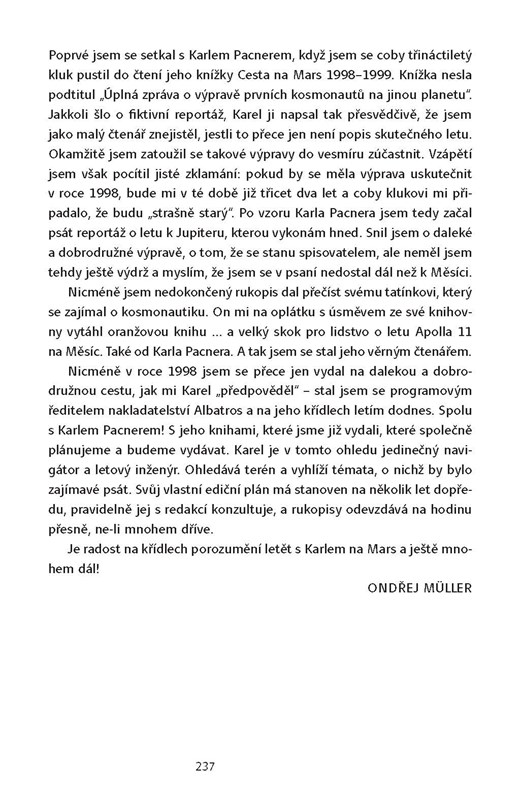 Karel Pacner, je jedním ze dvou Čechů, kteří byli v červenci 1969 u startu prvních lidí na Měsíc. Pracoval tehdy v Mladé frontě, umanul si, že takovou převratnou událost musí komentovat přímo z místa, a to také učinil. Jeho každodenní zprávy Houstne, tady Pacner se staly kultovními. Z pohledu dnešní doby, kdy existují mobilní telefony, internet, družicové přenosy…, se zdá být vznik tehdejších reportáží a jejich přenos přes oceán přímo neuvěřitelný. Uběhlo půl století a Karel Pacner pořád patří mezi novinářské špičky a špičky autorů literatury faktu, s novými technologiemi se zcela samozřejmě sžil a od svého počítače dokáže bádat mj. v archivech tajných služeb. O čemž svědčí ohlas jeho posledních knih z oblasti špionáže. Karel Pacner je bezesporu českou jedničkou v popularizaci kosmonautiky i špionáže.