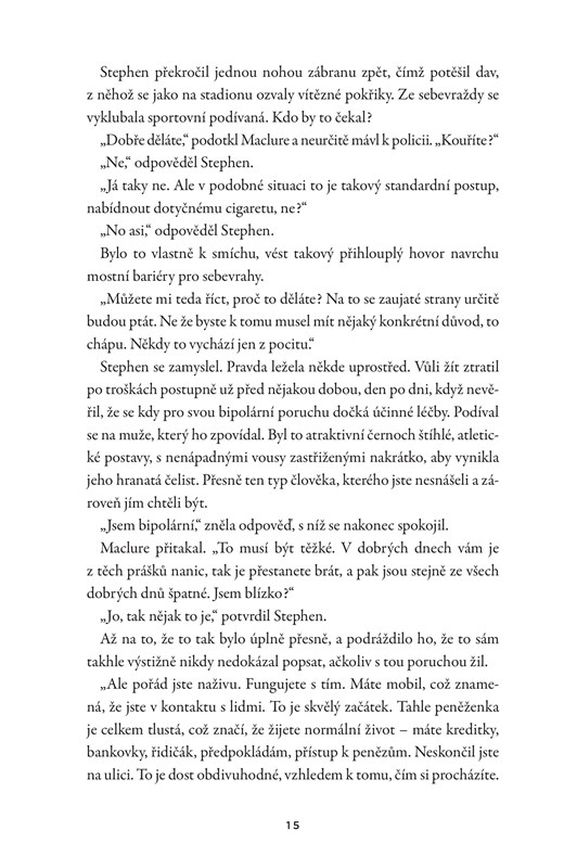 „Bylo hodně poučné nořit se do mysli magora, číst jeho zdánlivou obhajobu a koukat na věci jeho očima, jeho perspektivou. Poslední třetina byla naprosto fantastická, nečekaná, sepsaná svěžím jazykem (v překladu Nely Knapové) bez sebemenšího zavání.“