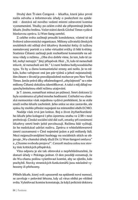 Dvojice zkušených novinářů vás prostřednictvím příběhu zdravotníků, pacientů i vrcholných politiků vezme za kulisy událostí, které převrátily Česko i svět vzhůru nohama.