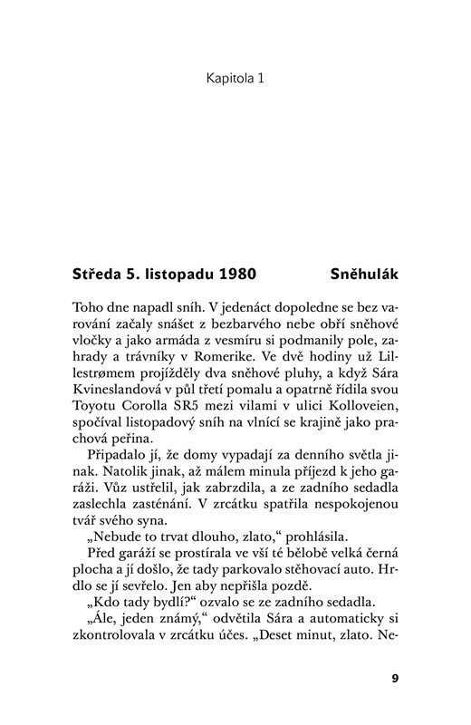 7. díl krimi série o detektivu Harrym Holeovi. Je listopad. V Oslu napadl první sníh. Birte Beckerová přichází domů z práce a chválí manžela a syna, jakého postavili v zahradě krásného sněhuláka. Jenže oni žádného sněhuláka nepostavili. Celá rodina užasle zírá z okna. Syn si všimne, že sněhulák je obrácen tváří k domu a jeho černé oči hledí přímo dovnitř. Ráno je Birte pryč. Zmizela bez stopy. Jen sněhulák má kolem krku její šálu. Vrchní komisař Harry Hole dostává tajemný dopis s podpisem "Sněhulák" a také novou kolegyni Katrine Brattovou, která si v tajuplnosti se Sněhulákem nezadá. Harry později zjistí, že Birte Beckerová není první případ. Na povrch vyplouvá řada podobných zmizení a ukazuje se, že mají společné rysy, především to, že všechny ženy byly vdané a všechny se ztratily s prvním sněhem. Rozbíhá se vyšetřování, které je tentokrát ještě napínavější než obvykle a pro Harryho o to složitější, že se silně dotýká jeho nové kolegyně i jedné velice blízké osoby. Harry ani netuší, jakému zlu bude muset tentokrát čelit a jakým způsobem bude muset prokázat, co v něm je.