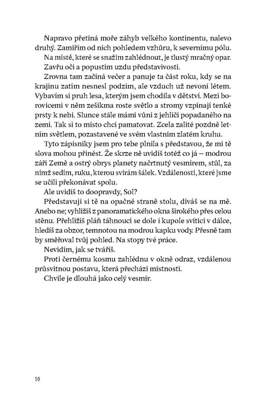Román psaný v dopisech vypráví ve vědecko-fantastických kulisách univerzální milostný příběh dvou osob ze zcela odlišných světů.