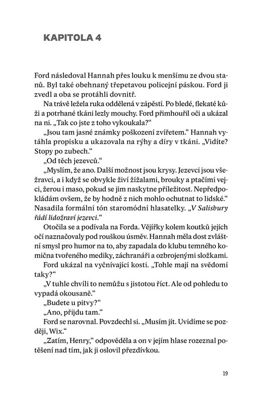 Kniha je volným pokračováním detektivky Temná hra. I tentokrát se čtenář může těšit na sympatickou dvojici vyšetřovatelů – šéfinspektora Henryho Forda, kterého stále tíží výčitky, že před lety zavinil smrt svojí ženy, a soudní lékařku Hannah Fellowesovou s poruchou autistického spektra. Společně se snaží vypátrat, kdo zavraždil penzionovaného ekoaktivistu a člena salisburského zločineckého gangu. Podaří se jim najít mezi těmito dvěma chladnokrevnými zločiny souvislost?