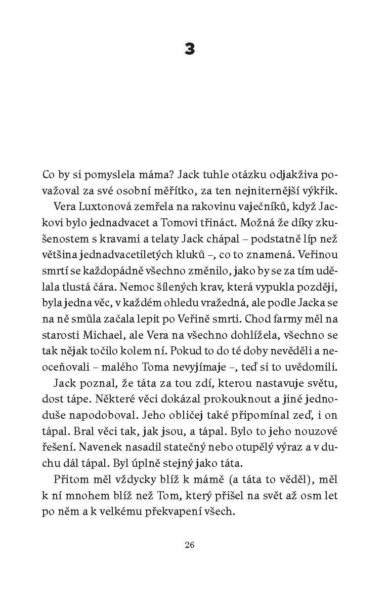 Jeden z nejvýznamnějších anglických spisovatelů naší doby se ve svém nejnovějším románu zabývá neblahými událostmi, s nimiž se jeho vlast v posledních letech musela a musí vyrovnávat. Na osudu hlavního hrdiny autor ukazuje, jak neštěstí, která jen povrchně registrujeme v podobě novinových titulků, poznamenávají osudy konkrétních lidí. Jack Luxton, hlavní hrdina románu, v důsledku nemoci šílených krav a následné epidemie slintavky a kulhavky byl nucen prodat farmu, na níž vyrostl, a v jiné části země začít nový život. Nyní dostává dopis se zprávou, že jeho bratr padl ve válce v Iráku. Po mnoha letech se vydává do rodného kraje, aby tam bratra pohřbil, a tato cesta se pro něj zároveň stává návratem do vlastní minulosti, plné trýznivých vzpomínek a zdánlivě zapomenutých rodinných tajemství. Během cesty se propadá do těžké osobní krize a ve strhujícím závěru knihy se ocitá se na pokraji zdánlivě neodvratné katastrofy.