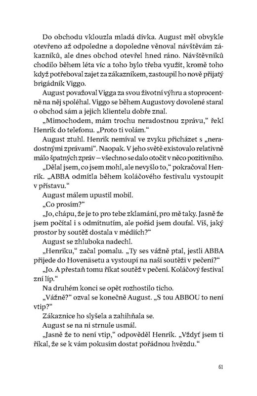 V těchto dnech vychází v Knize Zlín Mlha, třetí díl atmosférické detektivní série z pera Kristiny Ohlssonové. V Hovenäsetu vrcholí léto, slunce se třpytí na mořské hladině a August Strindberg se chystá účastnit se soutěže v pečení. Pak ale vše zahalí mlha, z níž se vynoří mrtvý muž oběšený na skokanském můstku. Muže nikdo nezná, stejně jako dívku, která se v Hovenäsetu objeví ve stejnou dobu a ubytuje se v Mrazírně, domě, kde v roce 1989 našli rozčtvrcenou ženu. A do Augustova obchodu přichází žena, která chce prodat starožitné japonské nože…