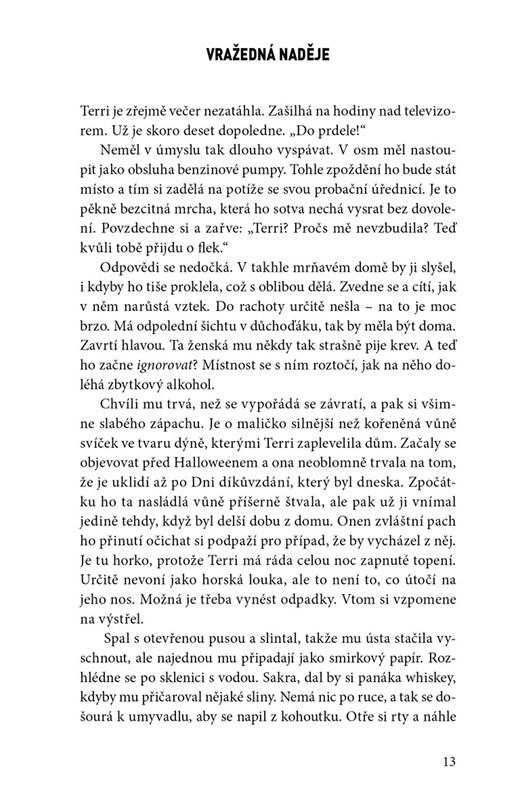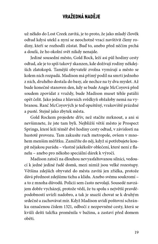 Detektiv Madison Harperová se těší na Den díkůvzdání, který po letech strávených ve vězení konečně zase oslaví se svým synem. Ale ani jí, ani městečku Lost Creek není poklidný sváteční den dopřán. V domě na okraji města je totiž bez známek života nalezena Terri Summersová, pečovatelka z místního domova pro seniory. Byla to laskavá žena, která si žila svůj život a do ničeho se nepletla, tak proč by jí někdo ubližoval? Madison má pramálo vodítek a náhlé úmrtí v policejním týmu do vyšetřování vnese ještě větší zmatek.