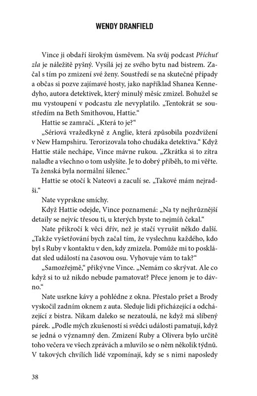 Plné ruce práce má i Nate Monroe. Rozhodl se totiž prozkoumat odložený případ, jehož stín se nad Lost Creek vznáší už šest let – zmizení manželky a vnuka Vince Radera, majitele místního bistra. Podaří se Nateovi vyřešit záhadu a najít odpovědi, po kterých Vince tak dlouho prahne?