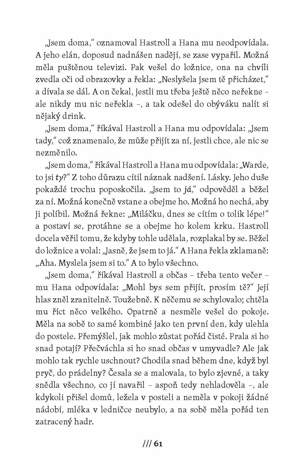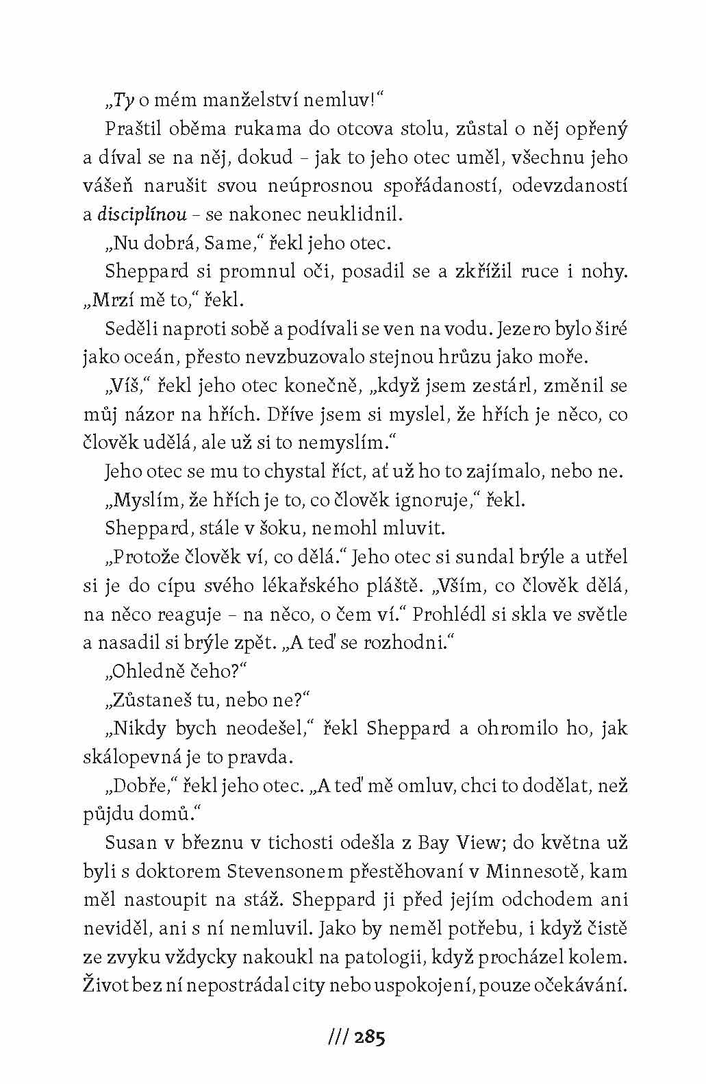 David Pepin svou ženu Alici miluje, zároveň už ji ale nemůže vystát, a tak začne snít o náhodném zásahu shůry, který ho milované ženy zbaví. Kde se sny stýkají s realitou? A jak do všeho zasáhne Pan Burák? V napínavém příběhu s kriminální zápletkou, který bravurně pracuje s psychologií a nezapře inspiraci ve filmech Alfreda Hitchcocka, Adam Ross zachycuje všechny odstíny emocí, jež těsné soužití v manželství přináší. Láska a násilí, důvěrnost a nevěra, touha a odpor jako by byly rubem a lícem téže mince, která se v letu neustále obrací. A nikdo dopředu neví, jak ta riskantní a nevyzpytatelná hra s city, jež čeká na každý pár, nakonec dopadne. Příběh Davida a Alice se prolíná a zrcadlí s příběhem detektiva Warda Hastrolla a jeho ženy Hannah, ale také se skutečným případem doktora Sama Shepparda z Ohia. Ten byl v roce 1954 odsouzen vraždu své ženy Marilyn a strávil deset let ve vězení, než jej soud v obnoveném řízení shledal nevinným. Román talentovaného Adama Rosse vyvolal po svém vydání senzaci a byl přeložen do řady jazyků.