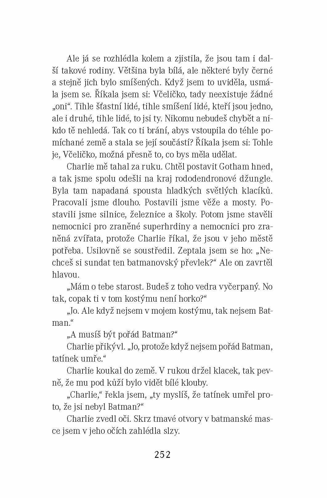 Román Včelička, od úspěšného britského novináře Chrise Cleavea, se okamžitě po svém vydání stal bestsellerem díky neobyčejně silnému příběhu dvou zcela rozdílných žen. S humorným nadhledem, a přece nekompromisně vypovídá o potížích a mravních dilematech, s nimiž se jeho hrdinky musí vypořádat v současném globalizovaném světě. Dramatické události, jež provázejí první setkání těchto dvou žen – úspěšné londýnské novinářky Sáry a mladičké domorodky – na opuštěné nigerijské pláži, mají pro obě nedozírné následky. Sára kvůli nim ztratí manžela, a Včelička ještě mnohem víc. Když se pak o dva roky později znovu setkají v Londýně, rozvine se mezi nimi překvapivé přátelství, v němž svou roli hraje i dvouletý Batman neochvějně bojující se všemožnými záporáky.