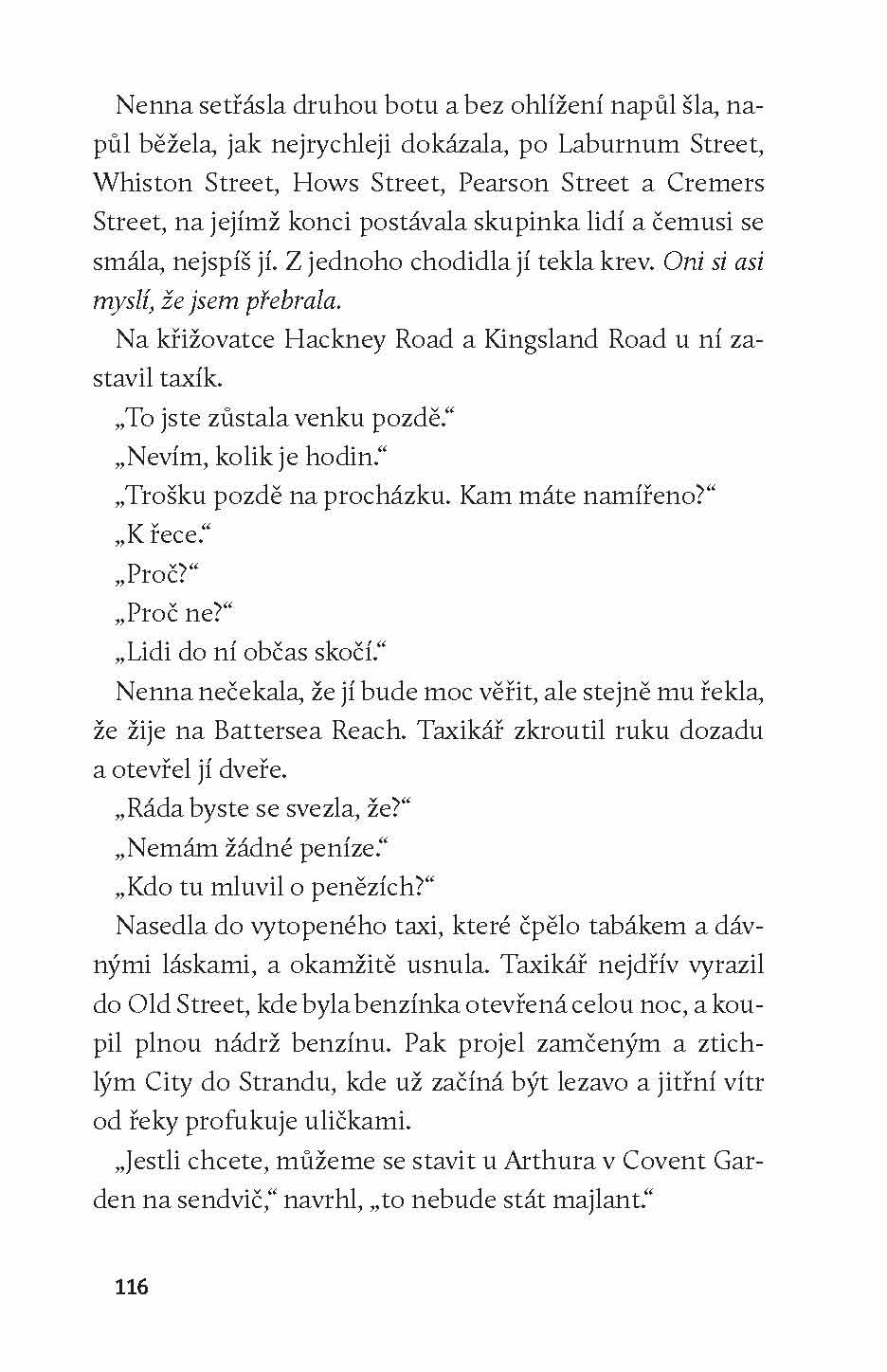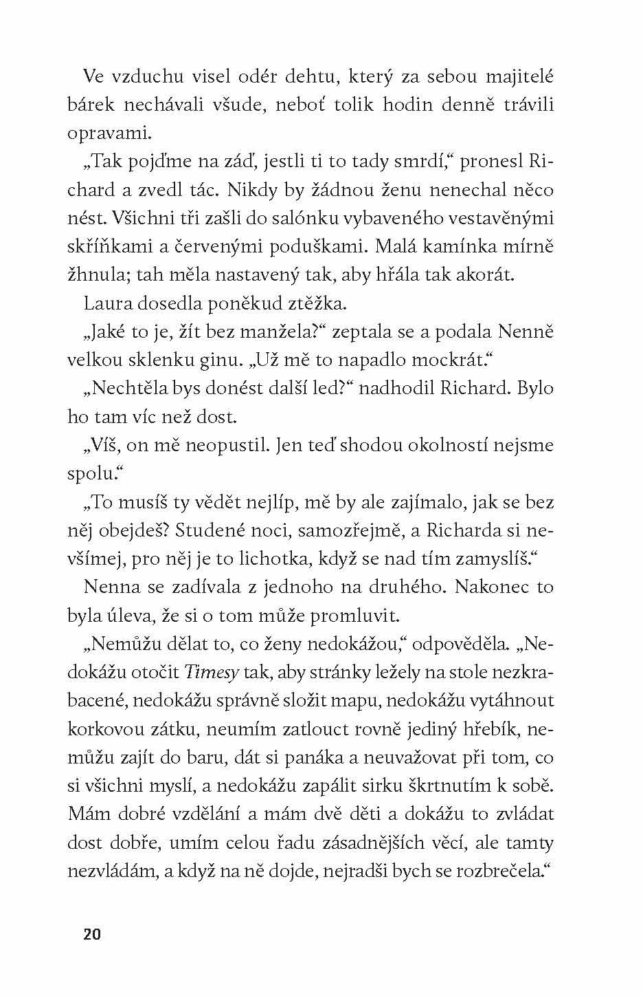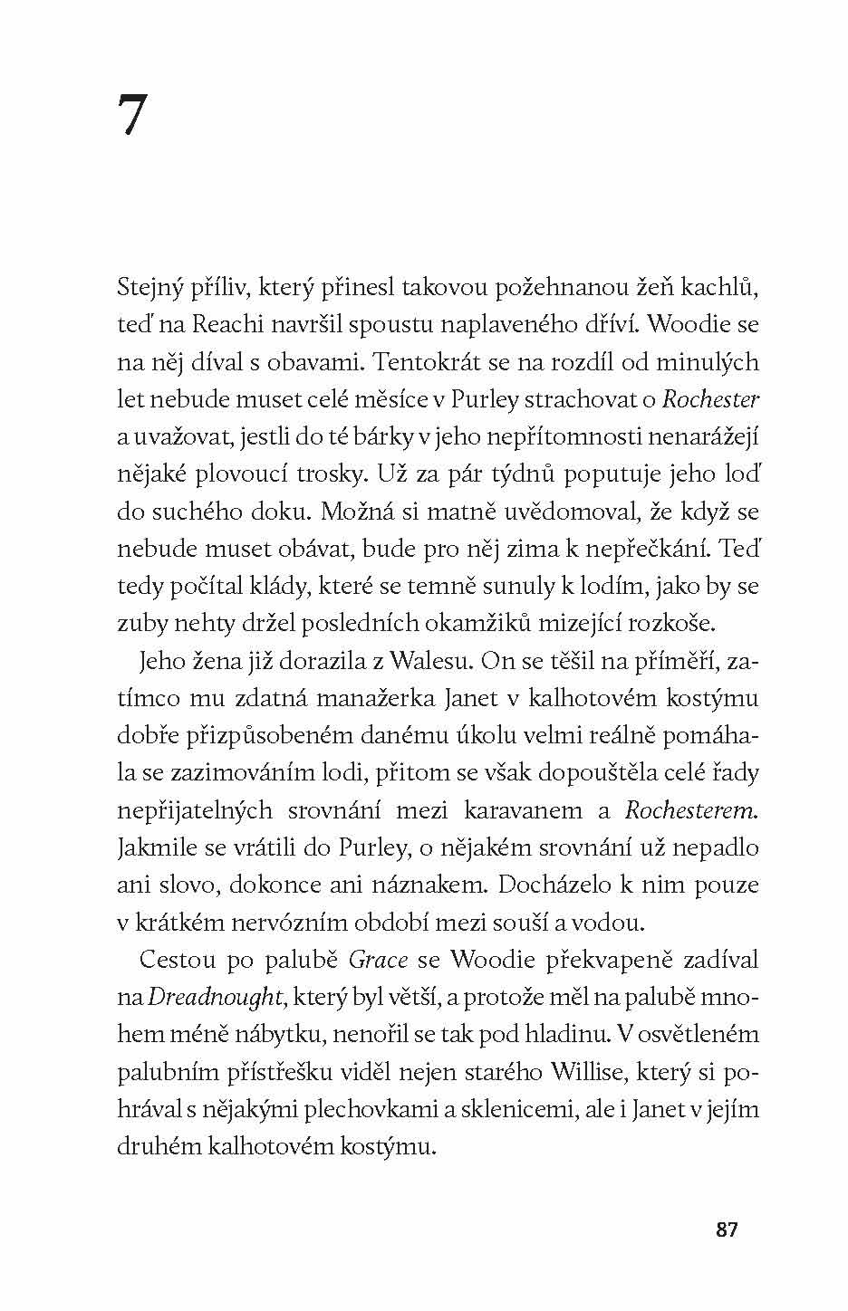„Na řece se říká, že když se temžská bárka zvedne s přílivem, nikdy už se úplně nepotopí.“ Rytmus přílivu a odlivu určuje i životy lidí, kteří obývají hausbóty u nábřeží Battersea na londýnské Temži. Román Na vodě líčí výstřední komunitu říčních lidí, kteří tak docela nepatří ani na souš, ani na moře. Potkáváme tu bývalého člena Královského námořnictva Richarda i lehkovážného prostituta Maurice, zestárlého malíře Willise anebo Nennu, matku dvou děvčátek, jejíž vztah s manželem uvízl na mělčině. Spisovatel Sebastian Faulks o této novele trefně poznamenal, že číst ji je jako vyrazit si na výlet v prvotřídním autě, jež budí naprostou důvěru, jenže po prvním kilometru jízdy jako by někdo utrhl volant a vyhodil ho z okna.
